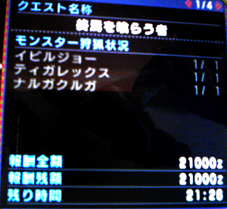 3オチと同時にアシラにとどめを刺してクエストリタイアになってしまいました。