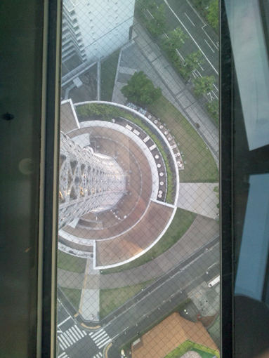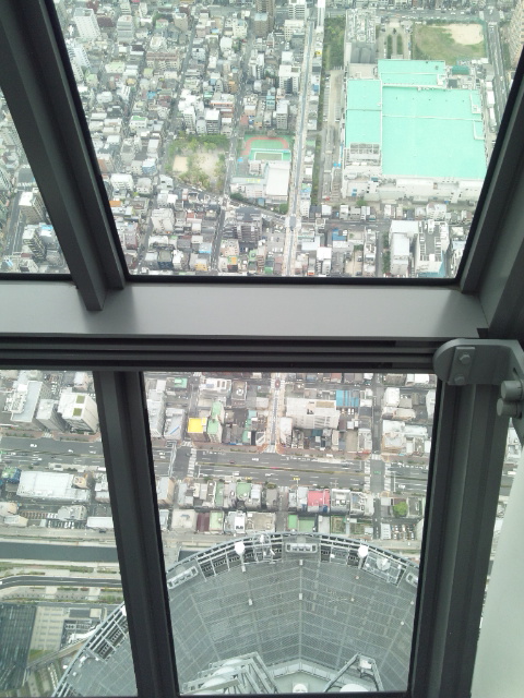 下を見ると地上350mの展望台が見えます。
